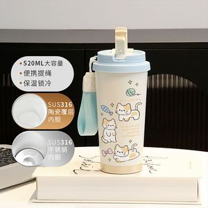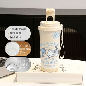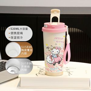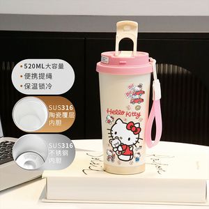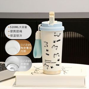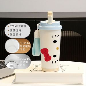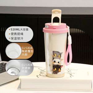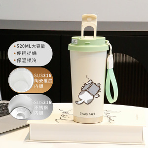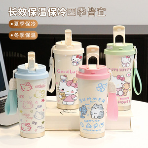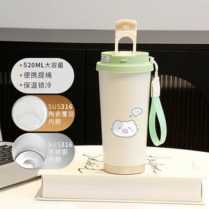新款童趣咖啡杯316不锈钢保温杯卡通带吸管杯子双饮高颜值喝水杯