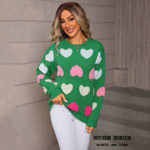2025欧美外贸毛衣新款冬季跨境女装爱心情人节圆领套头桃心毛衣女