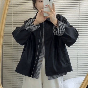 高级感翻领黑色皮衣外套女春秋季2025新款休闲百搭PU皮夹克上衣