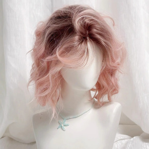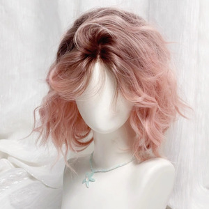 【可露丽】假发女粉色渐变蛋蛋卷短卷发仿真发日常自然假发全头套
