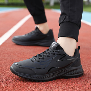 秋冬外贸大码皮面男鞋新款轻便防滑防水减震超软跑步鞋轻便休闲鞋