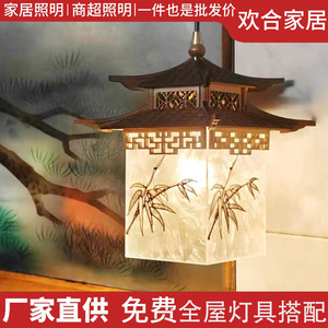 新中式宋代美学禅意茶室餐厅仿古建筑房子凉亭玄关灯四角凉亭吊灯