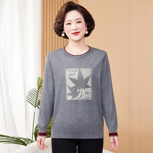 2025年中年装女针织衫秋季时尚妈妈装圆领套头中老年长袖线衫女装