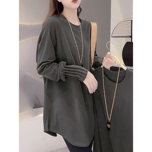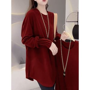 加厚德绒长袖T恤保暖打底衫女秋冬季中长款宽松大码胖mm内搭上衣