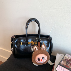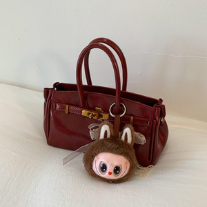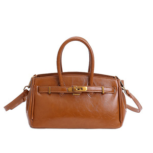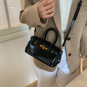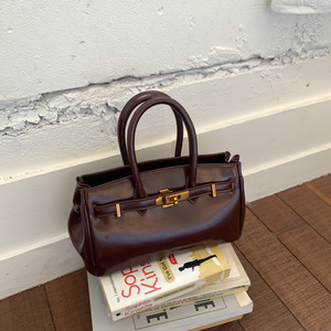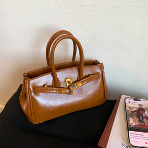 时尚气质铂金包2025夏季新款油蜡皮简约斜挎包韩系复古纯色手提包