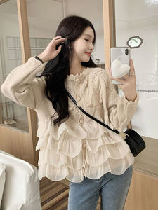 温柔风软糯重工毛衣开衫外套女秋冬外穿宽松慵懒风设计感针织上衣