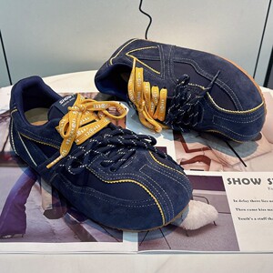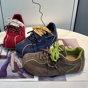 内增拼色德训鞋女2025秋季新款百搭双系带休闲复古软底运动阿甘鞋