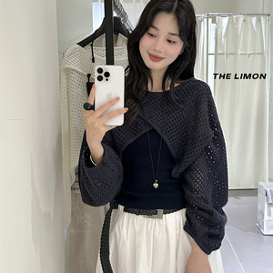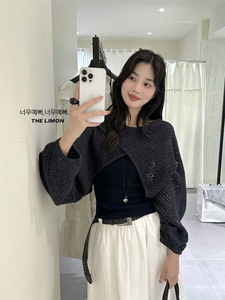 thelimon柠檬绿茶2025秋季设计感镂空针织衫加内搭背心吊带套装女