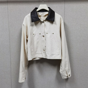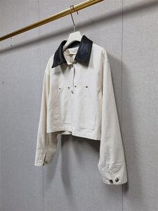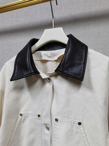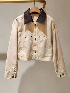 法式小众2025早秋新款复古撞色拼接宽松显瘦翻领短款外套