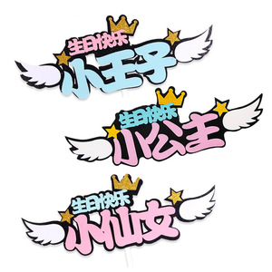 网红创意小仙女小王子男神女神生日快乐蛋糕装饰插件插牌