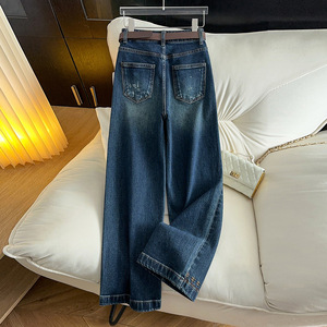 设计感复古阔腿牛仔裤女2025新款春秋时尚百搭宽松重工刺绣直筒裤