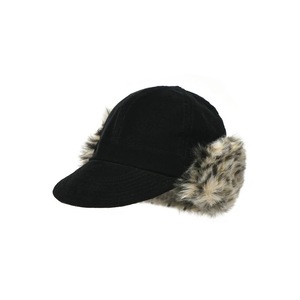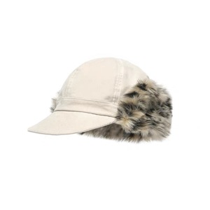韩国ins 豹纹耳毛可爱设计半圈护耳灯芯绒帽棒球帽毛绒鸭舌帽