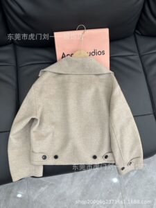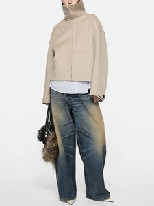AC-简约羊毛混纺高领拉链设计保暖双面夹克外套内女