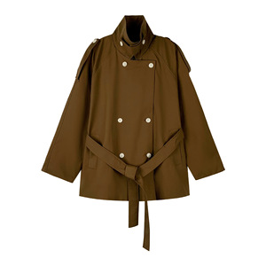 MOXI十三行女装2025秋季新款韩版立领外套小个子中长款风衣外套女