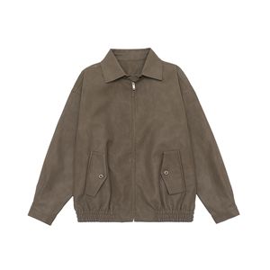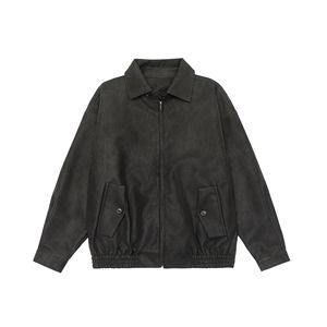 LKTM男装 美式复古扎染翻领皮衣外套男女高级感潮牌痞帅PU皮夹克