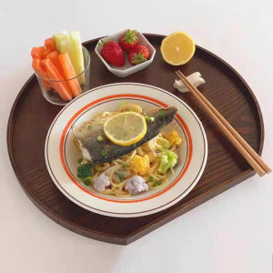木质日式托盘家用托盘餐具套装一人食不规则圆形托盘早餐盘