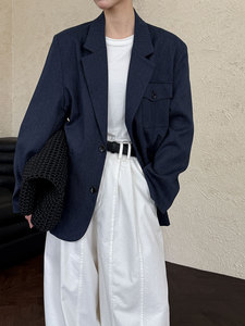 鹿西 法式小众翻驳领贴袋西装女2025秋季新款廓形休闲外套9766