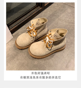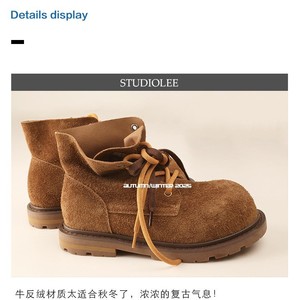 真皮厚底马丁靴女英伦风2025秋新款内增高户外防滑短靴休闲大黄靴