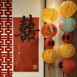 婚房氛围感布置客厅背景墙结婚套装拉花装饰婚礼喜字KT板灯笼女方