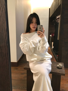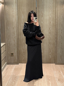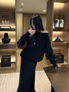 FOX ROOM 慵懒风斜领针织衫2025秋季新款宽松气质露肩毛衣女Y123
