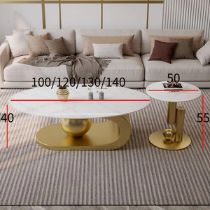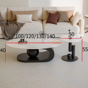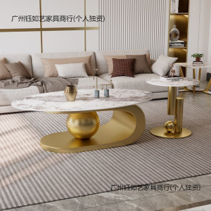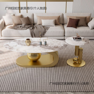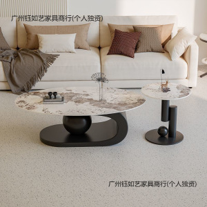 椭圆形岩板茶几简约小户型现代家用客厅茶桌组合意式轻奢子母茶几