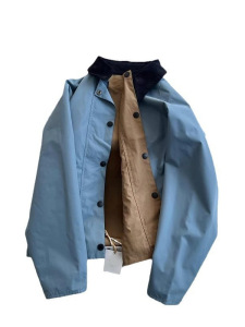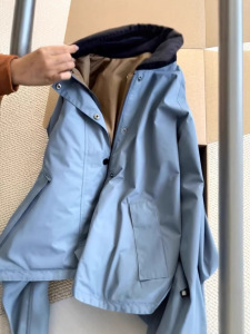 CHAO级推荐!复古蓝拼色翻领两面穿宽松休闲夹克外套女短款风衣冬