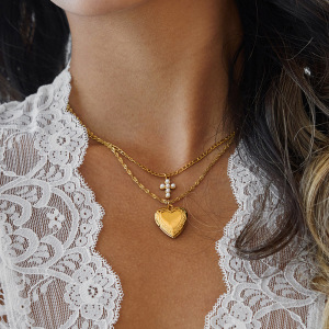 万兴欧美十字架珍珠项链配饰女18k 金不锈钢首饰轻奢跨境饰品小众