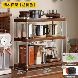 复古杯子收纳架桌面光轴置物架咖啡角实木杯架餐边柜桌上转角架子