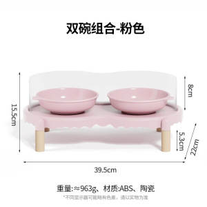 2个小爪印把手碗(粉色)+泡泡碗架(粉色)木色脚