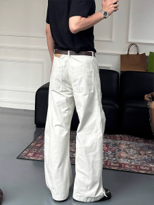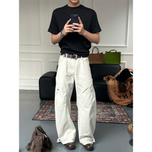 灰白色复古水洗直筒工装裤男秋季美式穿搭弯刀长裤宽松阔腿休闲裤