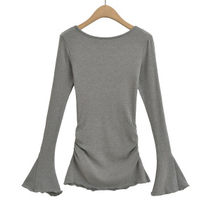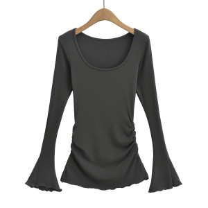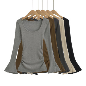 2025美式纯欲风方领喇叭长袖T恤女秋季修身显瘦百搭收腰打底上衣