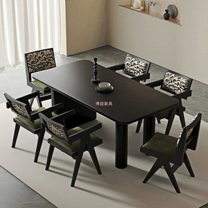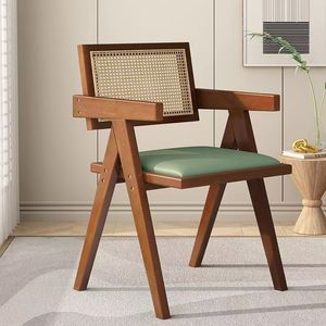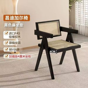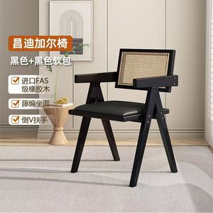 法式复古餐桌椅子实木餐椅家用北欧昌迪加尔藤编椅休闲软包扶手椅