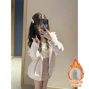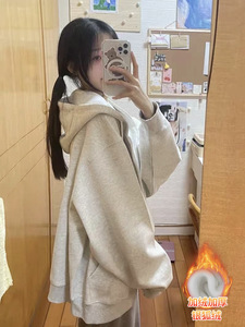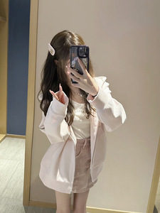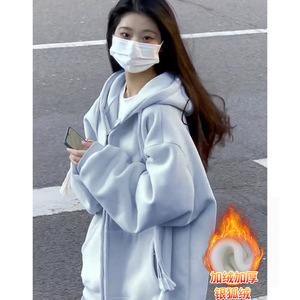 奶蓝色连帽卫衣外套女韩系薄款帽衫入秋宽松慵懒感bm显瘦开衫上衣