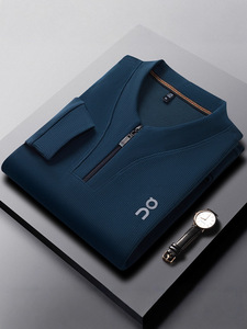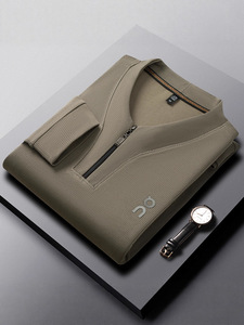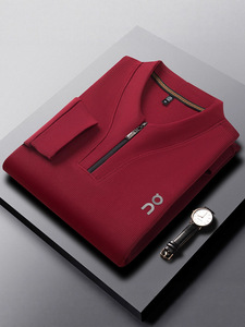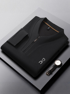 春季新款半拉链POLO衫男士长袖翻领t恤纯色中年宽松潮流体恤男装