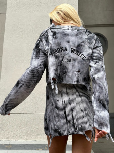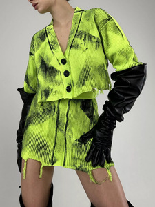 跨境欧美做旧磨损毛衣套装女2025新款单排纽扣露腰外套+高腰短裙