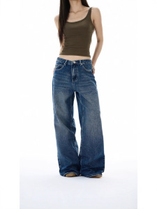 外贸新款|美式牛仔裤宽松潮牌直筒复古水洗牛仔裤百搭阔腿长裤子