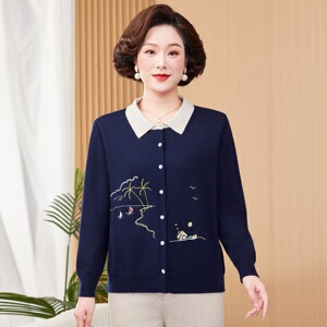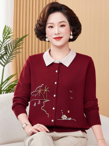 妈妈秋装针织开衫洋气上衣外套时尚中老年女装翻领毛衣宽松打底衫