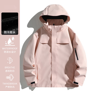 啄木鸟蓝色冲锋衣男女新款小个子户外防风三合一爬山旅游穿搭外套