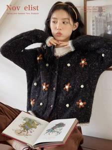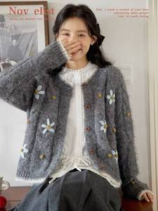 高级感刺绣毛衣女2025新款秋冬韩系女装上衣简约宽松长袖针织开衫