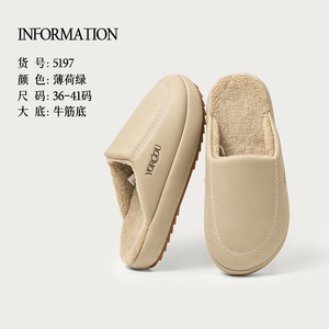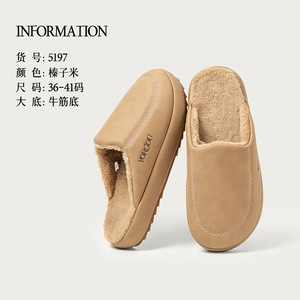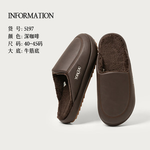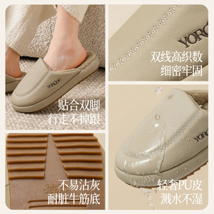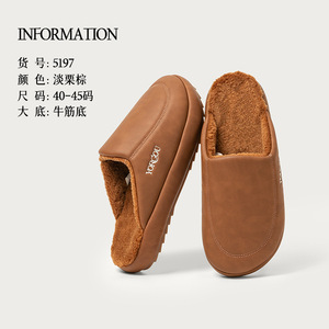 远港2025新款牛筋底包头棉拖鞋女秋冬季居室内保暖防滑加绒皮拖男