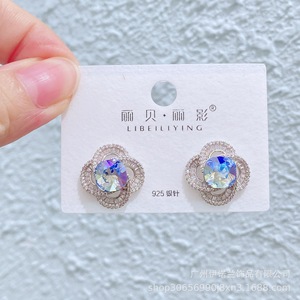 丽银/丽贝丽影新款轻奢耳环精致锆石珍珠蝴蝶结花朵耳钉时髦高级