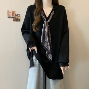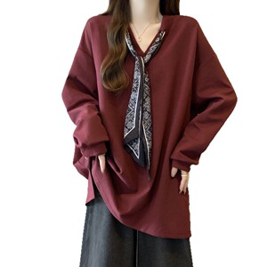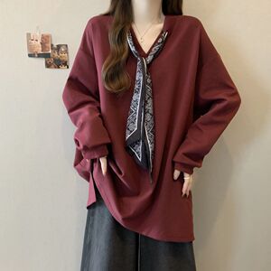 大码设计感系带V领长袖T恤女2025春秋新款宽松显瘦简约外穿打底衫