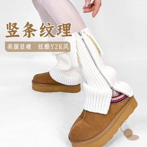 新款日系袜竖条腿套辣妹中筒拉链y2k堆堆袜女jk秋冬保暖小腿袜套