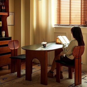 复古中古餐椅客厅家用靠背设计师简约实木靠背北欧椅子矮凳