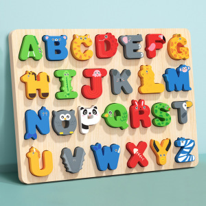 儿童卡通数字字母拼图积木早教数字形状拼板益智力开发木质配对玩