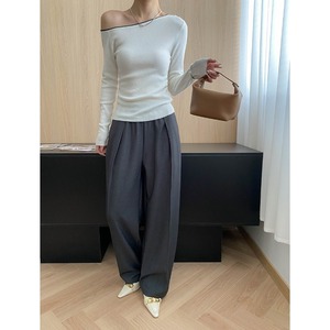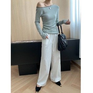 司南 博主氛围感 撞色斜肩设计感褶皱收腰修身显瘦针织衫 SN7851