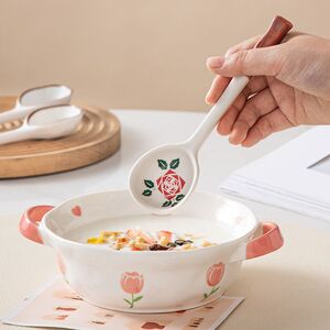 陶瓷勺子ins高颜值汤勺家用喝汤调羹饭长柄可爱稀奇古怪