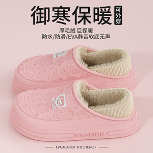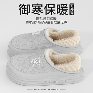 防水棉鞋女士包跟厚底外穿柔软毛绒居家室内保暖棉拖鞋男冬天批发
