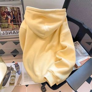 优质慵懒风秋冬款奶黄色开衫拉链连帽卫衣女百搭大码宽松韩版外套