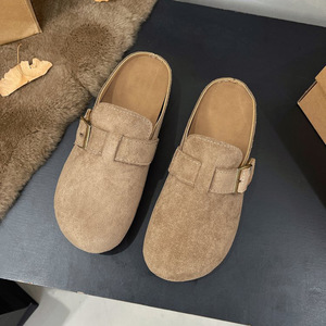 复古百搭单鞋女2025秋季新款包头半拖鞋外穿小个子厚底增高博肯鞋
